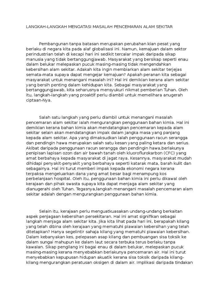 Pencemaran alam sekitar spm contoh karangan bahasa tamil langkah mengatasi. Kesan pencemaran alam sekitar yang paling ketara dan sedang hangat diperkatakan oleh seluruh warga dunia pada masa kini adalah kesan pemanasan bumi yang disebabkan komposisi gas-gas rumah hijau meningkat melebihi tahap kebiasaan. Post a Comment for Karangan Tentang Pencemaran Alam Sekitar.